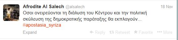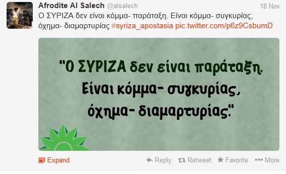 Πυρά κατά του ΣΥΡΙΖΑ εξαπολύει μέσω Twitter η Αφροδίτη Αλ Σάλεχ, στέλεχος τουΠΑΣΟΚ.