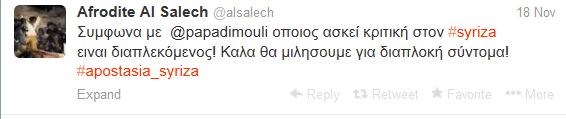 “Συμφωνα με Δημήτρη Παπαδημούλη, όποιος ασκεί κριτική στον ΣΥΡΙΖΑ ειναι διαπλεκόμενος! Καλα θα μιλησουμε για διαπλοκή σύντομα!”
