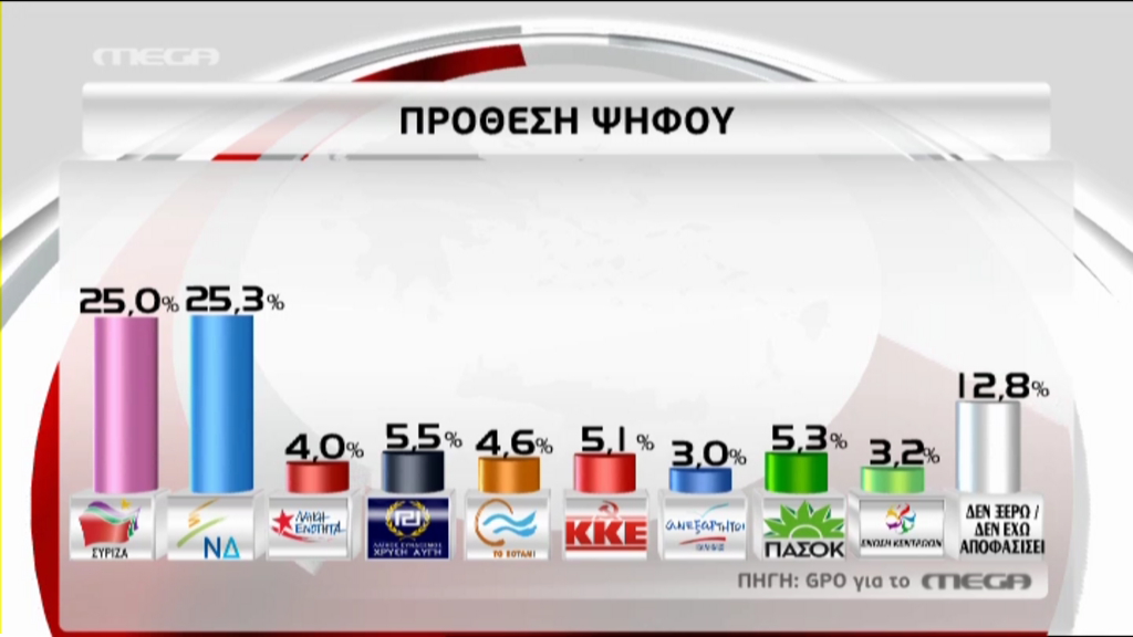 Οι αναποφάσιστοι αγγίζουν το ποσοστό του 12,8%.