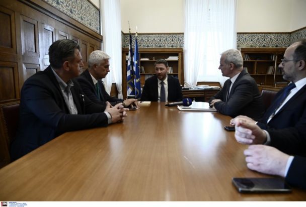 Με την Πανελλήνια Ομοσπονδία Αστυνομικών Υπαλλήλων συναντήθηκε μετά το μεσημέρι ο Νίκος Ανδρουλάκης. Η συνάντηση έγινε στο γραφείο του προέδρου του ΠΑΣΟΚ-Κινήματος Αλλαγής, στη Βουλή και συζητήθηκαν τα φαινόμενα αύξησης της εγκληματικότητας και η ανασφάλεια που προκαλείται στους πολίτες καθώς και τα προβλήματα που αντιμετωπίζουν οι αστυνομικοί υπάλληλοι.