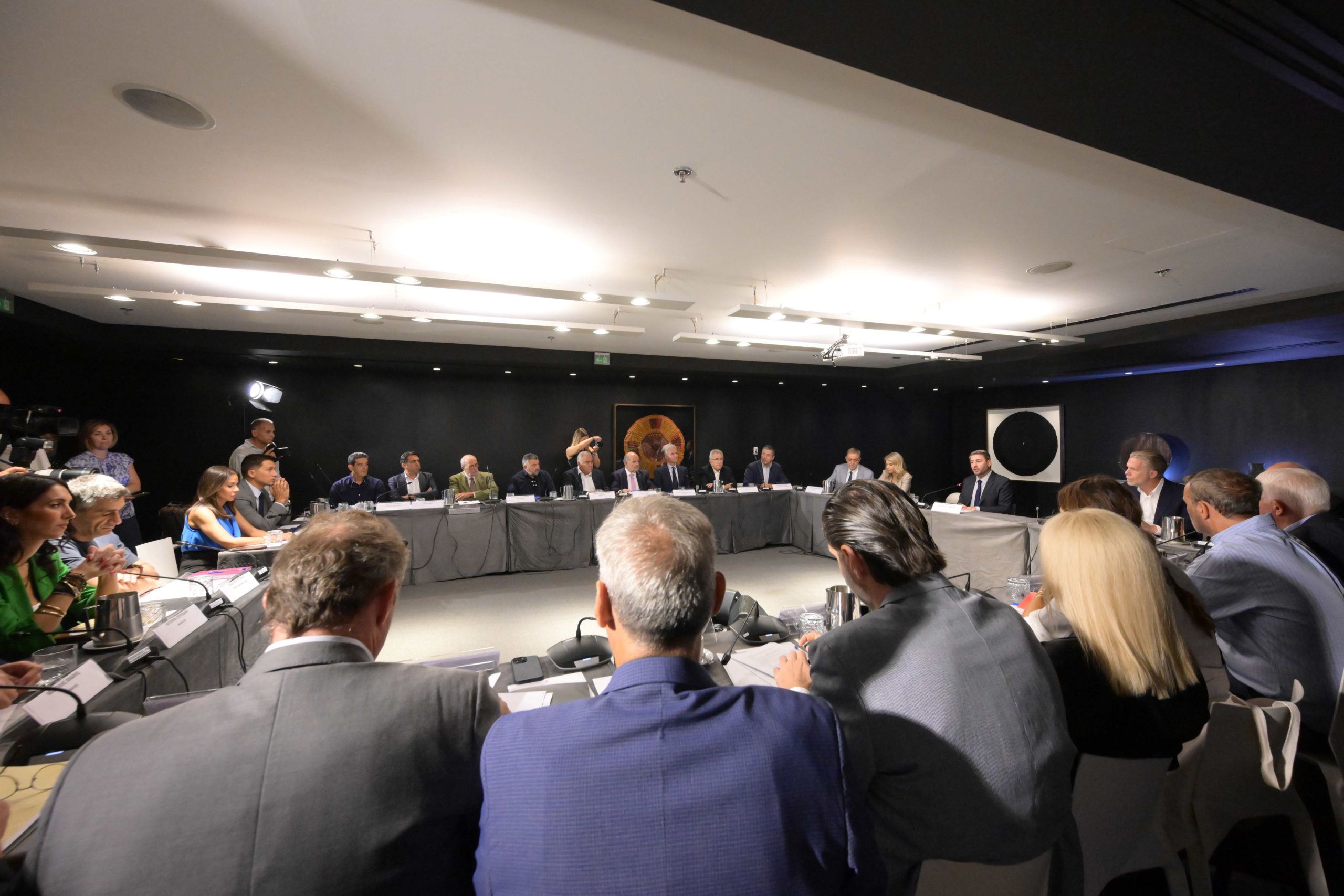 Απευθυνόμενος στους εκπρόσωπους των παραγωγικών και κοινωνικών φορέων τόνισε ότι «εμείς σας καλέσαμε σήμερα εδώ διότι ο διάλογος με τους ανθρώπους της αγοράς, της εργασίας, της παραγωγής είναι σημαντικό στοιχείο της πολιτικής ώστε να ανταλλάξουμε απόψεις για να βρούμε τις βέλτιστες λύσεις, που μπορούν να δημιουργήσουν την Ελλάδα του αύριο, την Ελλάδα στο επίκεντρο των ευρωπαϊκών εξελίξεων, την Ελλάδα που χρησιμοποιεί με τον καλύτερο δυνατό τρόπο τις ευκαιρίες, τον πακτωλό των ευρωπαϊκών προγραμμάτων. Πώς μπορούμε μαζί να οικοδομήσουμε την Ελλάδα του μέλλοντος».