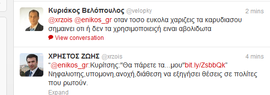Τη δήλωση του βουλευτή της ΔΗΜΑΡ Γιώργου Κυρίτση, ο οποίος είπε στην συνέλευση της ΔΕΚΑ Τρικάλων για τις Κοινωνικές Δομές ότι “θα πάρετε τα τέτοια μου”, σχολίασαν μέσω Twitter ο Χρήστος Ζώης και ο Κυριάκος Βελόπουλος.