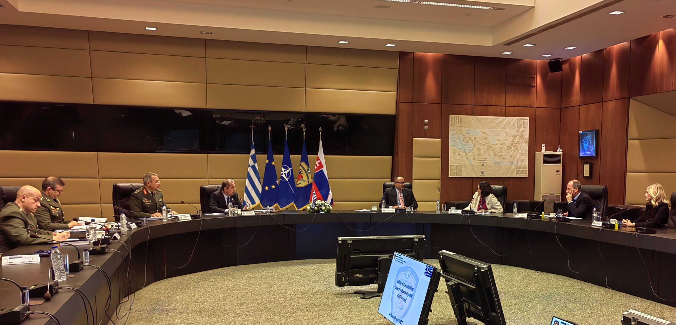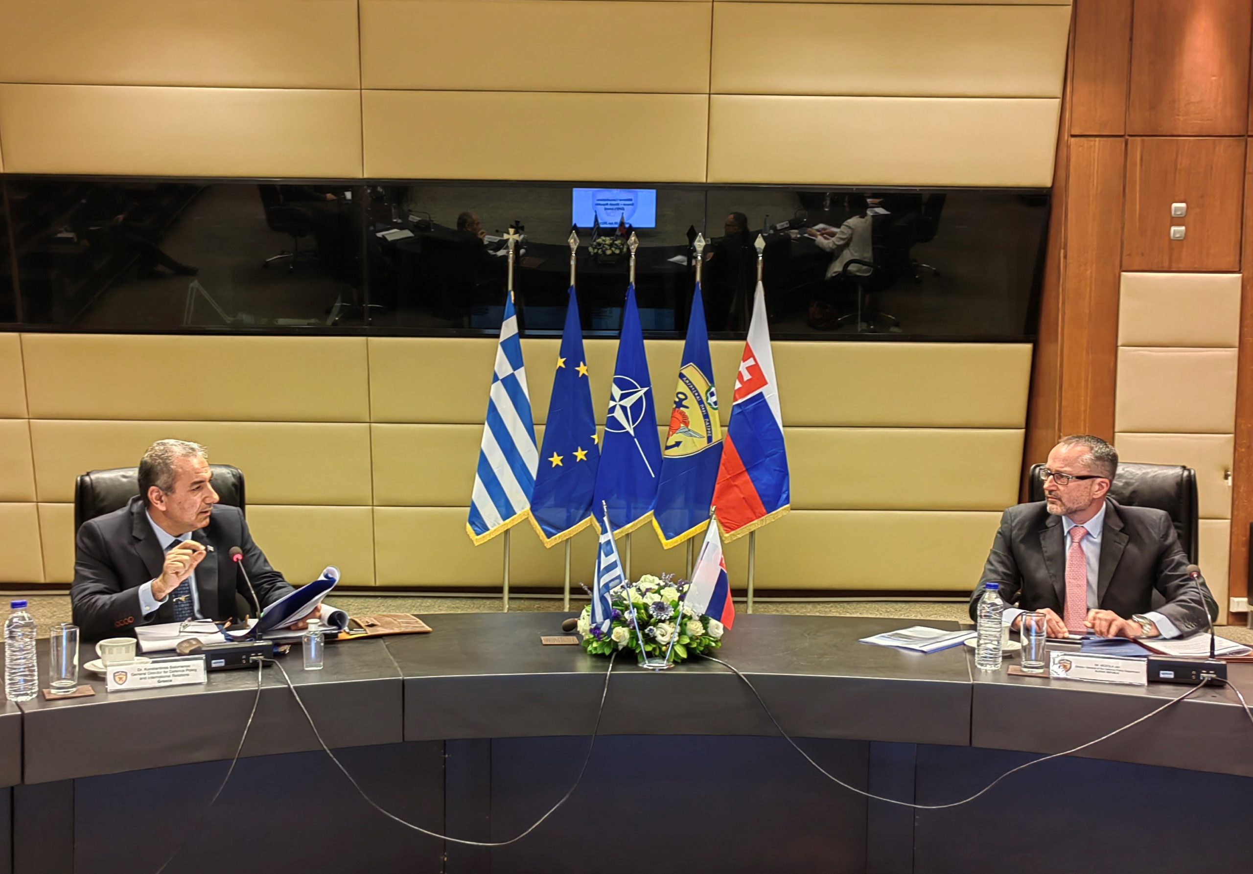 Την Παρασκευή 9 Ιουνίου, ο Δρ. Κωνσταντίνος Μπαλωμένος, ο ομόλογός του κ. Jan MOZOLA και η Πρέσβης της Σλοβακίας στην Αθήνα κυρία Marcela Hanusova μαζί με τις αντιπροσωπείες τους, πραγματοποίησαν διμερείς διαβουλεύσεις στην έδρα του Υπουργείου Εθνικής Άμυνας στην Αθήνα. Κύριοι άξονες της συζήτησης αποτέλεσαν: