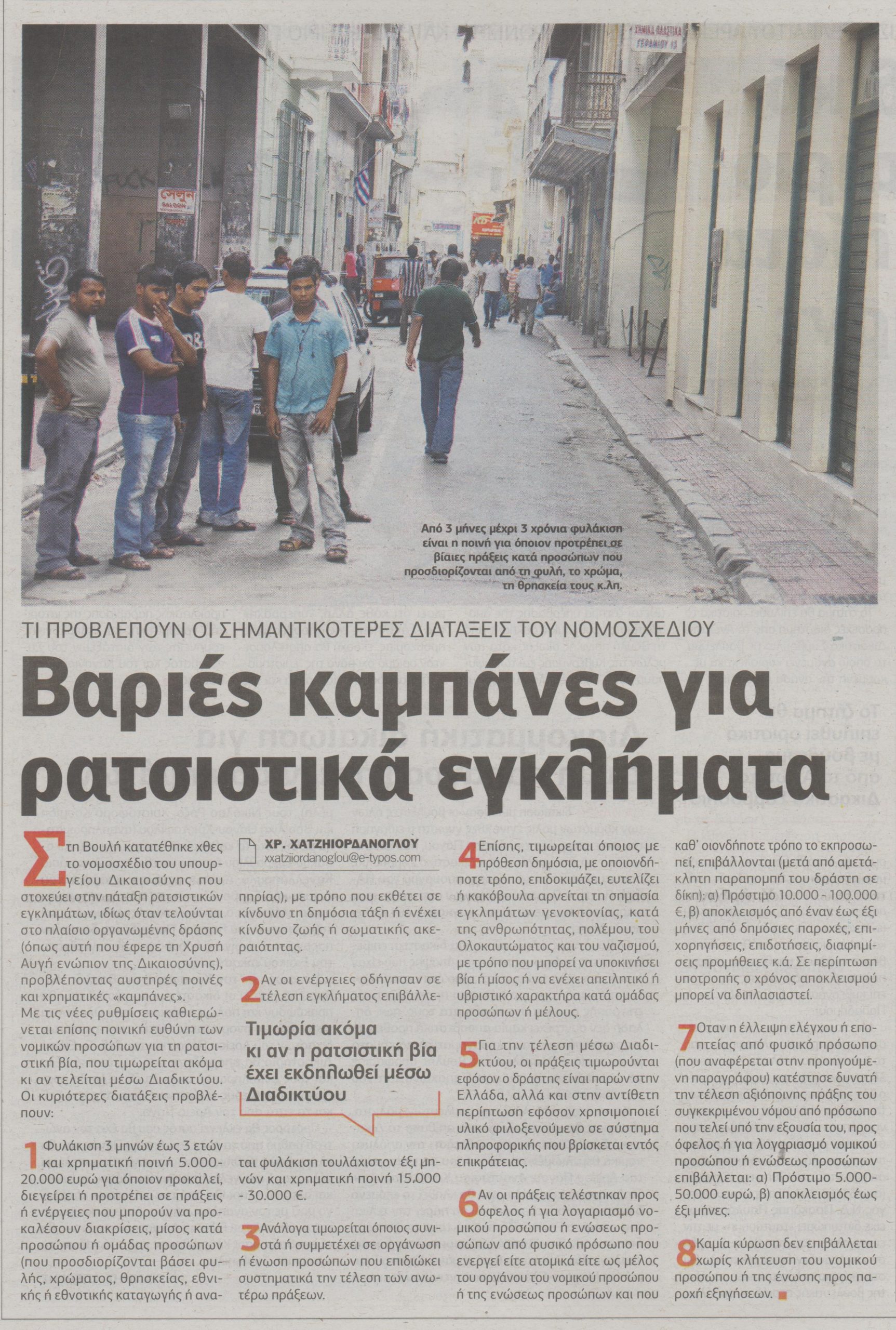 Με τις νέες ρυθμίσεις καθιερώνεται επίσης ποινική ευθύνη των νομικών προσώπων για τη ρατσιστική βία, που τιμωρείται ακόμα και αν τελείται μέσω Διαδικτύου.