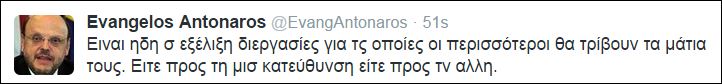 Την πρώτη ψηφοφορία για την εκλογή προέδρου Δημοκρατίας σχολίασε μέσω twitter ο πρώην κυβερνητικός εκπρόσωπος, Ευάγγελος Αντώναρος.