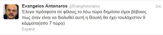 Μία πρόβλεψη για την εικόνα της επόμενης Βουλής, κάνει μέσω twitter ο Ευάγγελος Αντώναρος.