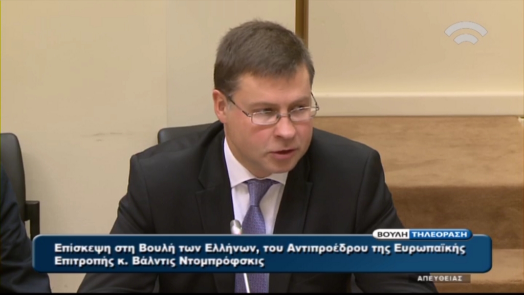 Παρακολουθείστε σε απευθείας μετάδοση την επίσκεψη του αντιπροέδρου της Ευρωπαϊκής Επιτροπής, Βάλντις Ντομπρόβσκις, στο ελληνικό κοινοβούλιο.