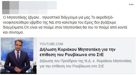 «Ο Μητσοτάκης έβγαλε τηλεοπτικό διάγγελμα για μας. Το ακροδεξιό νεοφιλελεύθερο υβρίδιο της Νέας Δημοκρατίας στα καλύτερά του. Εμείς δεν βγάζουμε διαγγέλματα. Ότι είναι να πούμε στον Μητσοτάκη, θα του το πούμε από κοντά και σύντομα».