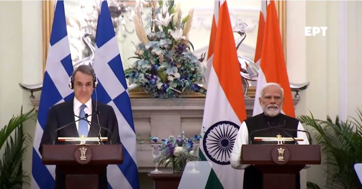 Οι δηλώσεις των Πρωθυπουργών Ελλάδας και Ινδίας Κυριάκου Μητσοτάκη και Narendra Modi. O Έλληνας Πρωθυπουργός πραγματοποιεί από το πρωί επίσημη επίσκεψη στην Ινδία.