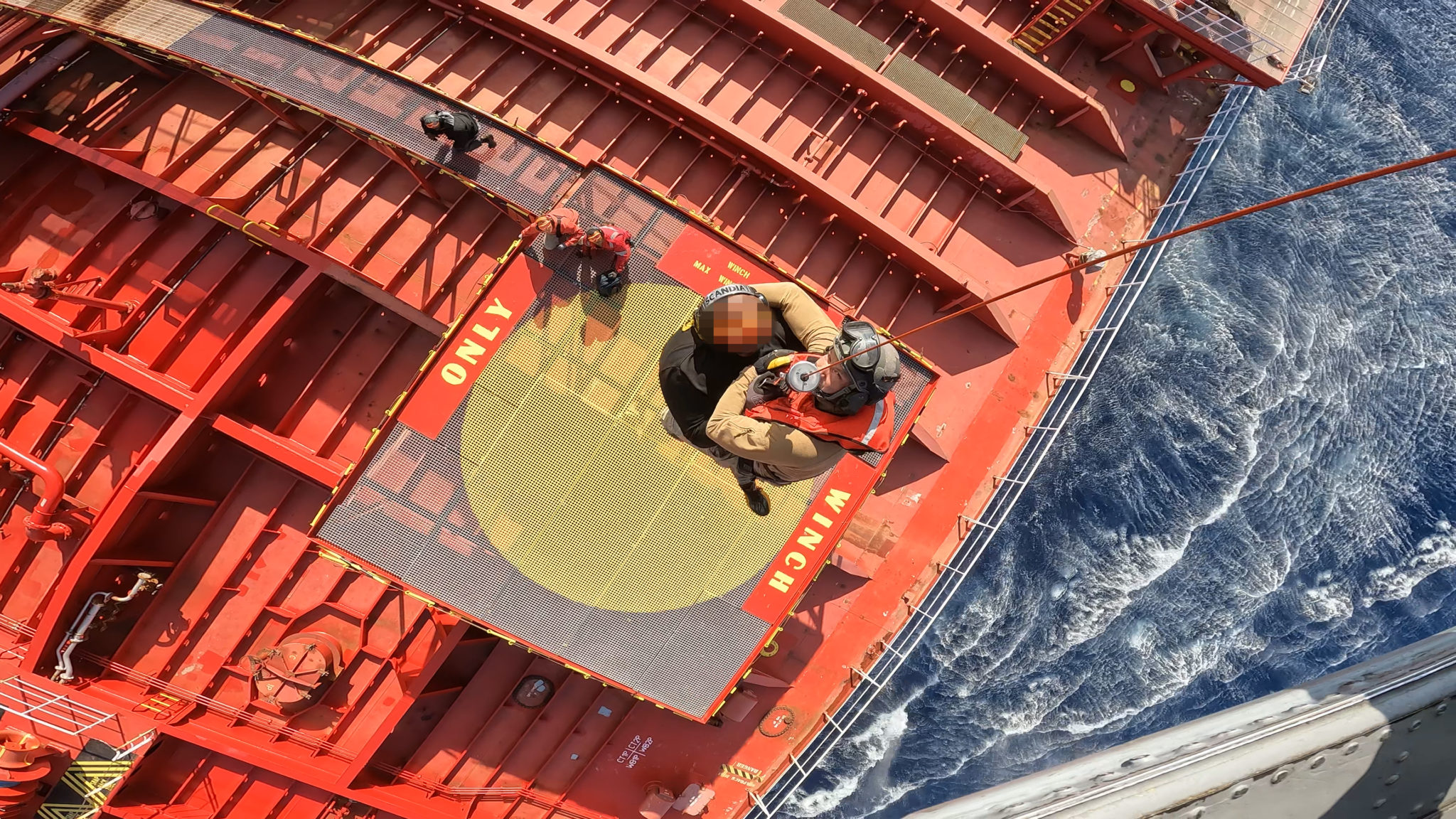 Σαν από μηχανής θεοί, το πλήρωμα ενός ελικοπτέρου τύπου S70B, Aegean Hawk του Πολεμικού Ναυτικού, απογειώθηκε από τη Βάση Ελικοπτέρων Ναυτικού (ΒΕΝ) στο Κοτρώνι κι έσπευσε για βοήθεια 70 ν.μ. νοτιοδυτικά της Καλαμάτας.