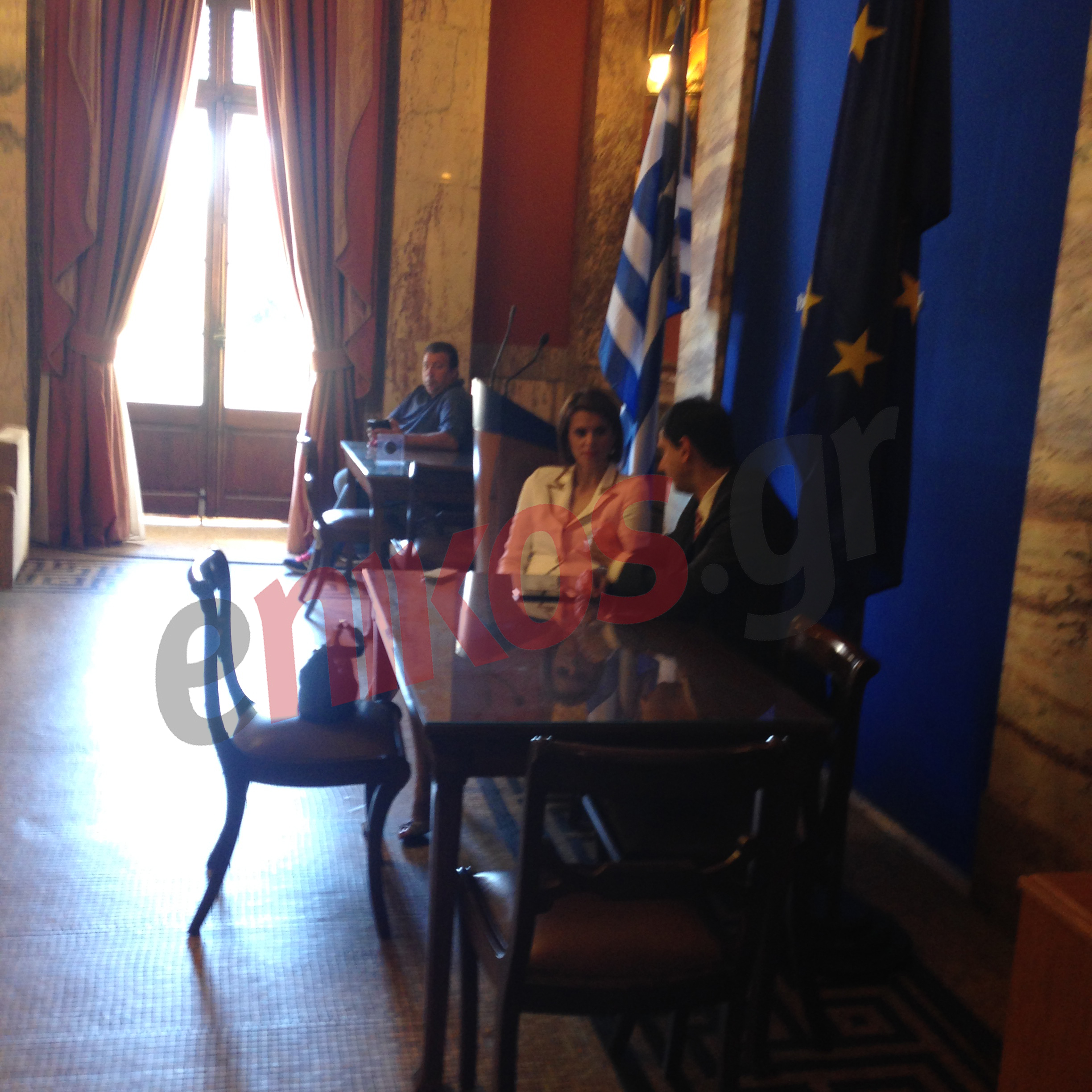 Ένα λευκό σακάκι φόρεσε η βουλευτής του Ποταμιού Κατερίνα Μάρκου. Μετά τη χθεσινή της επιλογή, του κόκκινου συνόλου, η κ. Μάρκου επέλεξε ένα πιο συντηρητικό ντύσιμο για τη σημερινή διαδικασία στο Κοινοβούλιο. Λίγο πριν ξεκινήσει η εκλογή του νέου Πρόεδρου της Βουλής συζήτησε για λίγο με τον βουλευτή του κόμματος Χάρη Θεοχάρη.