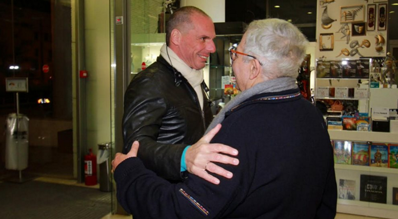 Ο κ. Βαρουφάκης πήγε στην παρουσίαση του βιβλίου «Η τριλογία της λιτότητας», στο Ίδρυμα Μιχάλης Κακογιάννης, συνοδευόμενος από τη σύζυγο του Δανάη Στράτου.