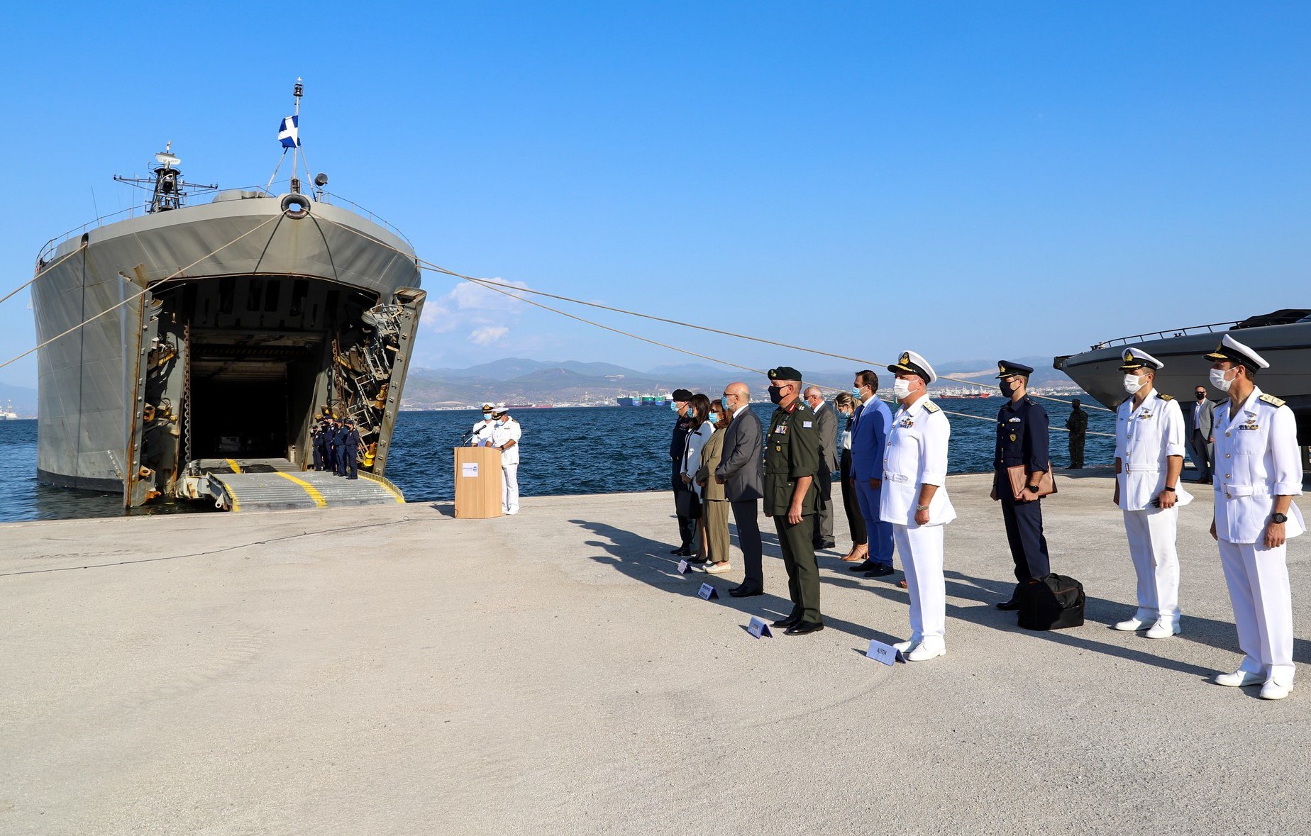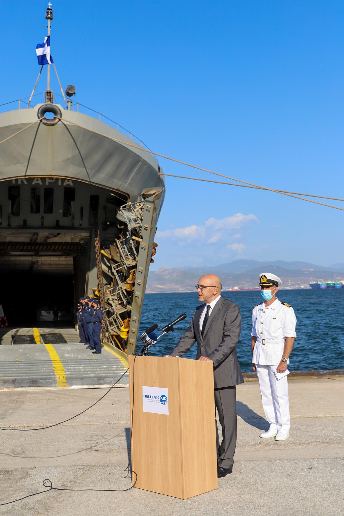 Το πρωί, ο Υφυπουργός Εξωτερικών για την Οικονομική Διπλωματία και την Εξωστρέφεια Κωνσταντίνος Φραγκογιάννης, ο Αρχηγός ΓΕΕΘΑ Στρατηγός Κωνσταντίνος Φλώρος, η Πρέσβης του Λιβάνου στην Ελλάδα κα. Dona Barakat, και ο Αρχηγός ΓΕΝ Αντιναύαρχος Στυλιανός Πετράκης ΠΝ παρέστησαν στην τελετή απόπλου του Αρματαγωγού ΙΚΑΡΙΑ, το οποίο για δεύτερη φορά μεταφέρει μεγάλη ποσότητα ανθρωπιστικής βοήθειας, στο σκληρά δοκιμαζόμενο Λίβανο από τις εκρήξεις της 4ης Αυγούστου 2020 στο λιμένα της Βηρυτού.