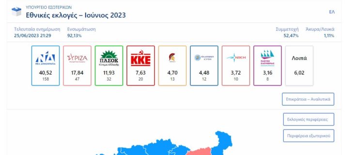 Με ραγδαίο ρυθμό εμφανίζονται τα αποτελέσματα των εκλογών από το υπουργείο Εσωτερικών και την Singular Logic.