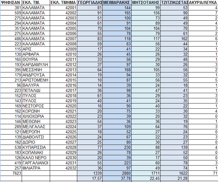 Όπως αναφέρει το parapolitikaargolida.gr, στα έως τώρα τμήματα της Αργολίδας που έχει υπάρξει αποτέλεσμα έχουμε:
