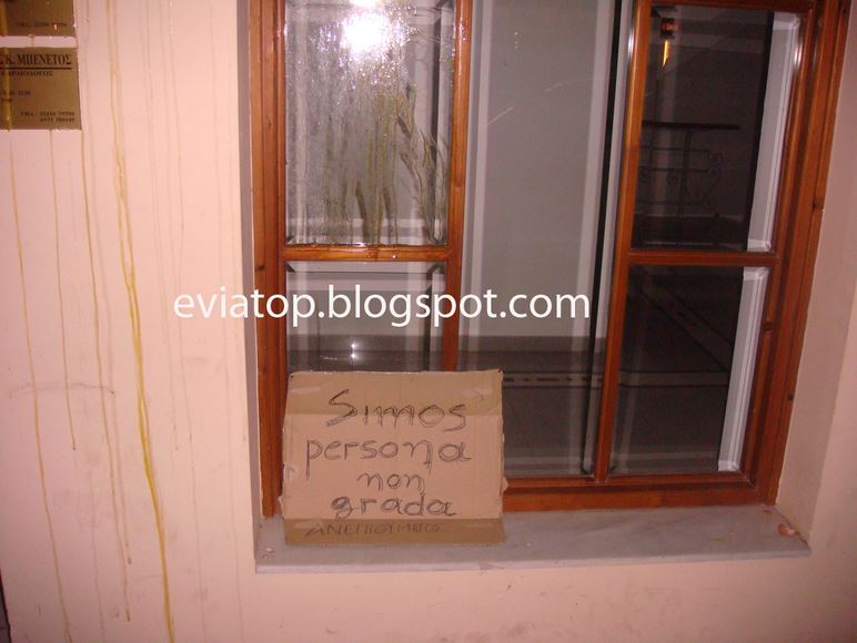 Με το σύνθημα “Η ΕΡΤ δεν είναι ιδιωτική – ούτε του Σίμου μαγαζί”, 100 περίπου άτομα συγκεντρώθηκαν χθες βράδυ έξω από το πολιτικό γραφείο του Σίμου Κεδίκογλου στη Νεοφύτου στη Χαλκίδα και πέταξαν αυγά.