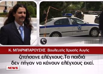 ”Τα παιδιά δεν πήγαν να κάνουν ελέγχους εκεί. Πήγαν να μαζέψουν υπογραφές, για το αν θέλουν να έχουν σεκιούριτι. Δεν είναι μέλη του συνδέσμου, από τους τέσσερις, τυχαίνει να γνωρίζω τους δυο”, δήλωσε ο βουλευτής της Χρυσής Αυγής, Κωνσταντίνος Μπαρμπαρούσης, σχολιάζοντας τα επεισόδια στο Μεσολόγγι, όπου τέσσερις άνδρες έκαναν έφοδο σε λαϊκή αγορά. Δείτε το βίντεο από τον ALPHA