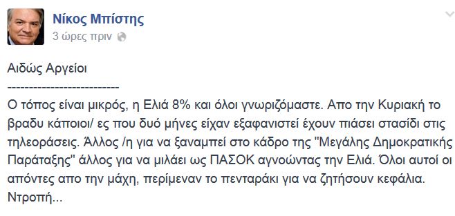 Μπίστης:Περίμεναν 5% για να ζητήσουν κεφάλια…