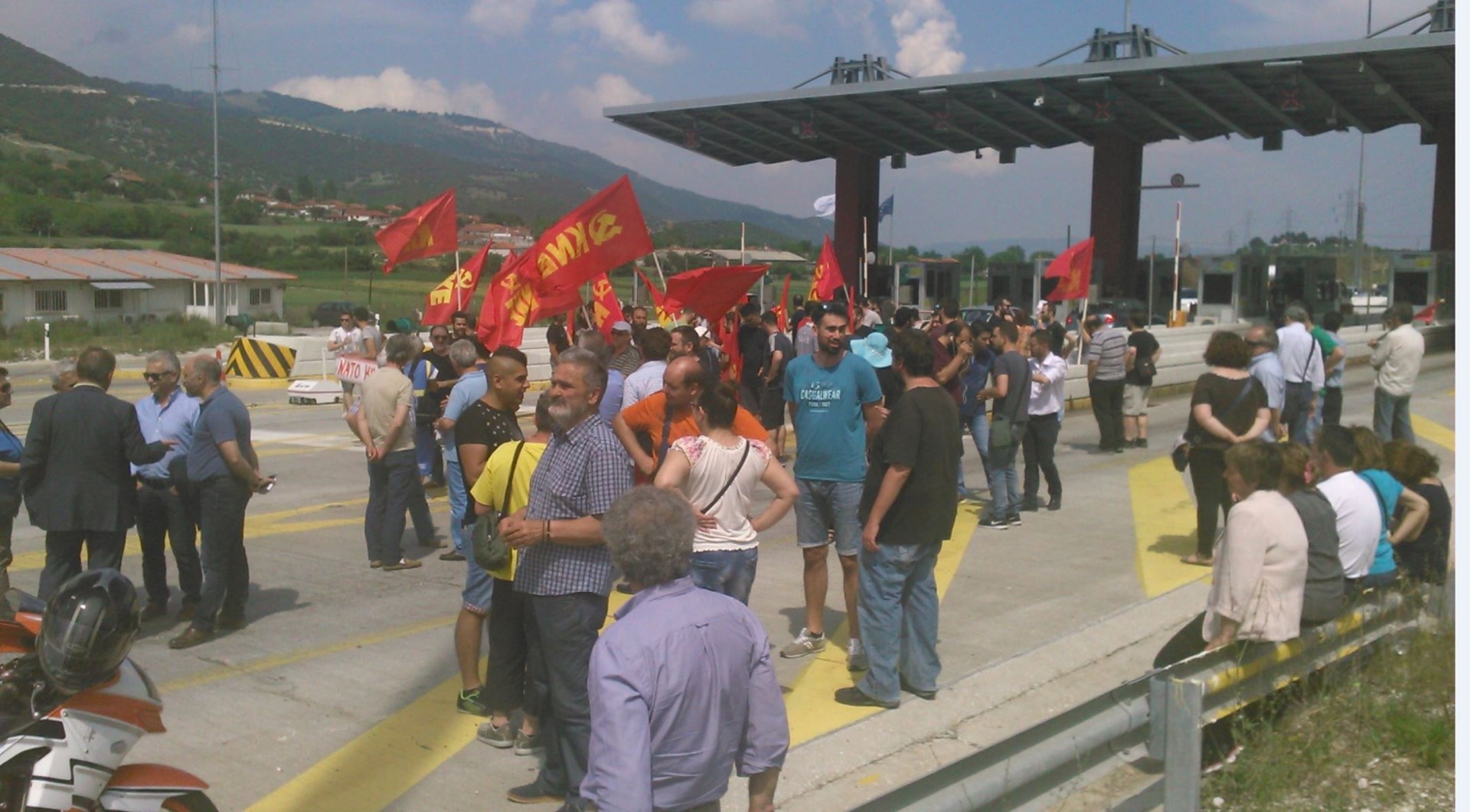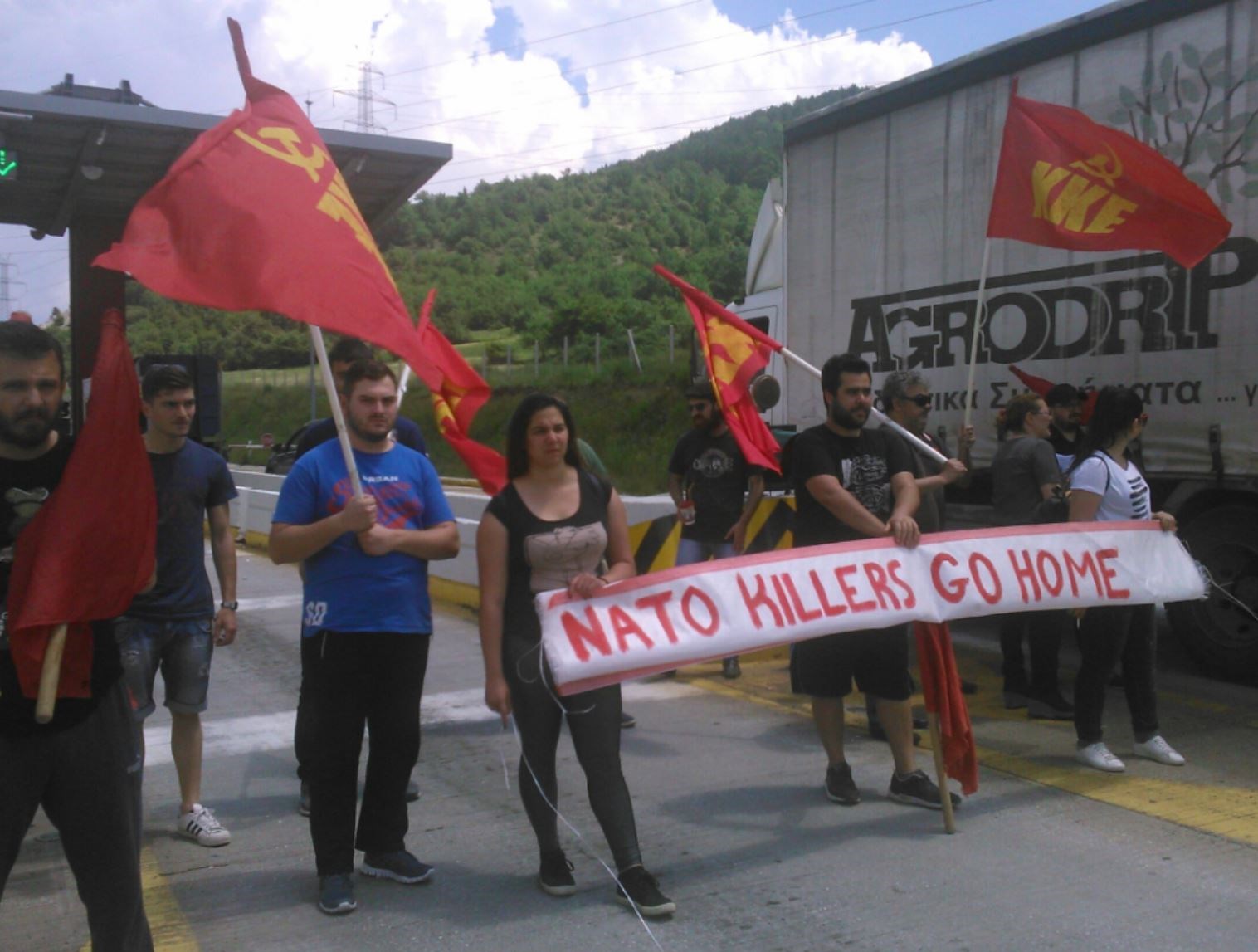 Μέλη και στελέχη του ΚΚΕ και της ΚΝΕ πραγματοποιούν αυτή την ώρα κινητοποίηση στα διόδια του Πολυμύλου, στο Νομό Κοζάνης, μπλοκάροντας αλβανική ΝΑΤΟϊκή δύναμη, αποτελούμενη από 20 οχήματα και δύο λεωφορεία, η οποία εισήλθε στην Ελλάδα, προκειμένου να ενταχθεί στις συνολικές δυνάμεις, που θα πάρουν μέρος στη ΝΑΤΟϊκή άσκηση «Noble Jump» στη Ρουμανία.