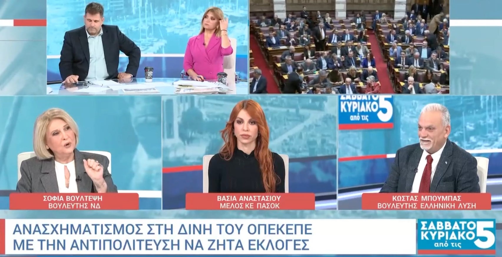 Πολιτική κόντρα ξέσπασε σε πρωινή εκπομπή της ΕΡΤ ανάμεσα στη βουλευτή της Νέας Δημοκρατίας Σοφία Βούλτεψη, την Βάσια Αναστασίου, μέλος της Κ.Ε. του ΠΑΣΟΚ και τον Κώστα Μπούμπα, βουλευτή της Ελληνικής Λύσης.