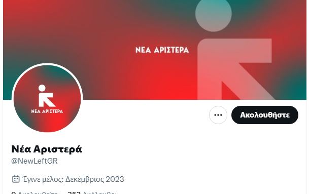 O λογαριασμός του φορέα στην πλατφόρμα Χ