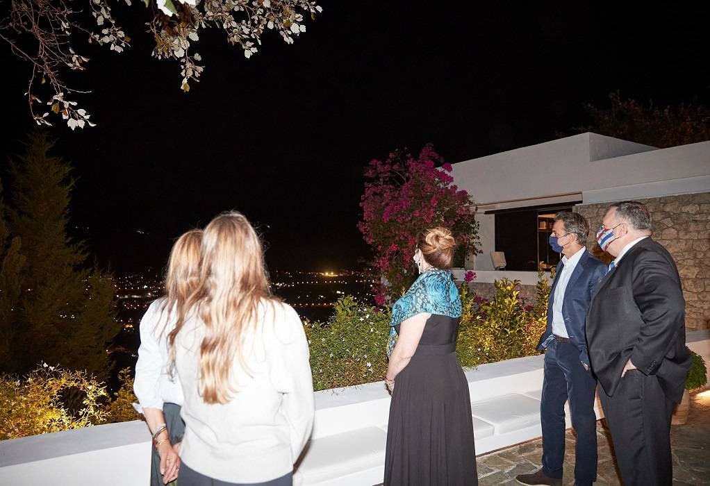Σύμφωνα με κυβερνητικές πηγές, οι κύριοι Μητσοτάκης και Πομπέο συζήτησαν για λίγο στη βεράντα του σπιτιού με θέα το λιμάνι της Σούδας.