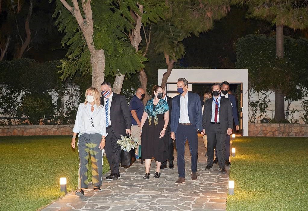 Ο πρωθυπουργός Κυριάκος Μητσοτάκης και η σύζυγός του Μαρέβα Γκραμπόφσκι – Μητσοτάκη υποδέχθηκαν στις 20.45 το βράδυ τον υπουργό Εξωτερικών των ΗΠΑ, Μάικ Πομπέο και τη σύζυγό του Σούζαν Πομπέο στο πατρικό σπίτι του πρωθυπουργού στα Χανιά.