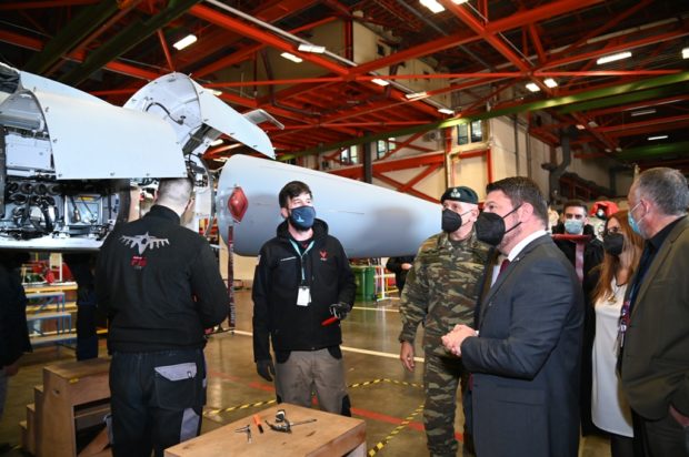 Ακολούθως, ο Υφυπουργός Εθνικής Άμυνας επισκέφθηκε τις εγκαταστάσεις της Ελληνικής Αμυντικής Βιομηχανίας στην Αεροπορική Βάση Τανάγρας, όπου τον υποδέχθηκε ο Πρόεδρος του Δ.Σ. της ΕΑΒ κ. Ιωάννης Κούτρας και ο Διευθύνων Σύμβουλος κ. Δημήτριος Παπακώστας.