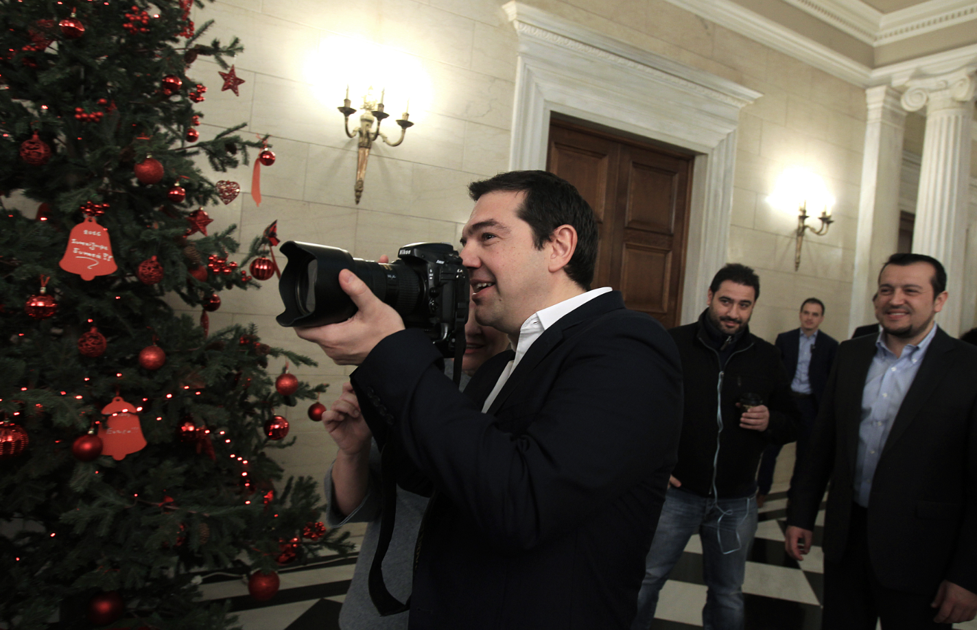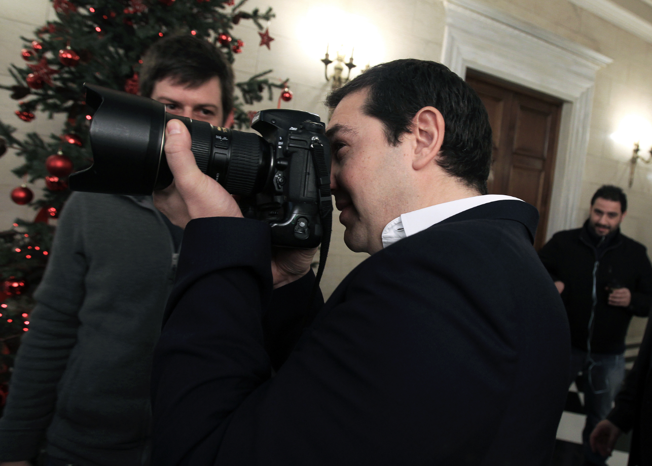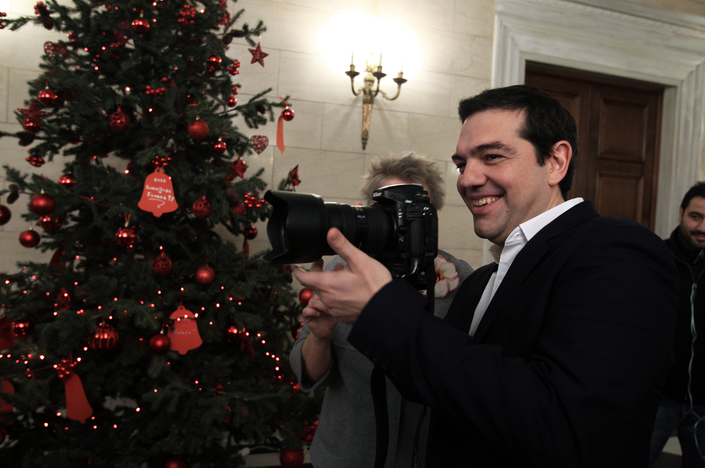 Με χαλαρή διάθεση εμφανίστηκε ο Πρωθυπουργός Αλέξης Τσίπρας, στο Μέγαρο Μαξίμου, αμέσως μετά τα πρωτοχρονιάτικα κάλαντα. Όπως φαίνεται και στις φωτογραφίες, Πρωθυπουργός ανέλαβε καθήκοντα φωτογράφου, καθώς δοκίμασε μία επαγγελματική φωτογραφική μηχανή που δανείστηκε από φωτορεπόρτερ που βρισκόταν στο Μαξίμου.