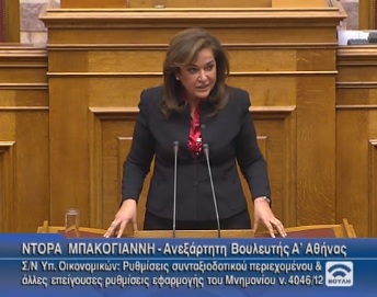 Διευκρινίσεις σχετικά με το έμβασμα 1 εκατ. ευρώ του συζύγου της, έδωσε από το βήμα της Βουλής η πρόεδρος της Δημοκρατικής Συμμαχίας Ντόρα Μπακογιάννη.