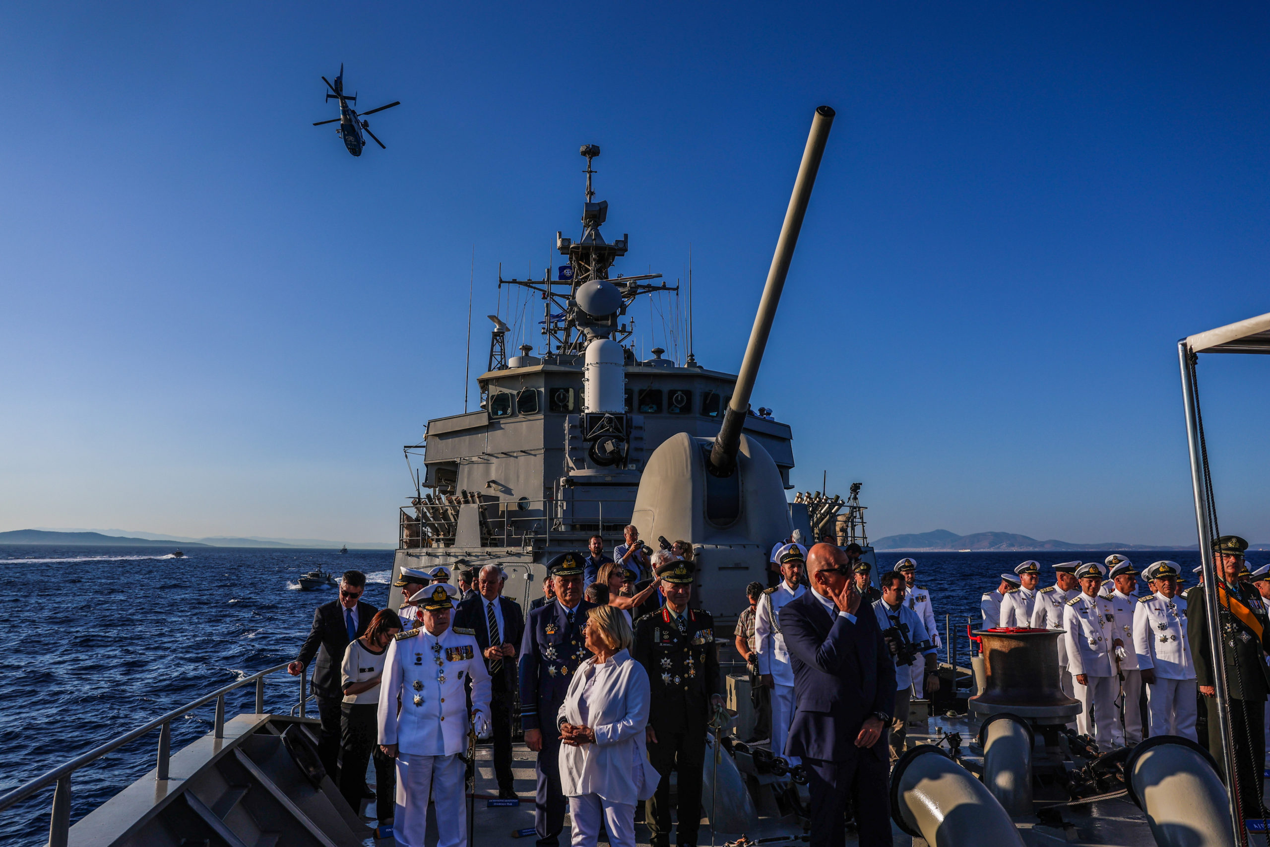 Αυτό τόνισε, μεταξύ άλλων, ο υπουργός Εθνικής Άμυνας Νίκος Δένδιας, ο οποίος παρέστη χθες, Δευτέρα 30 Ιουνίου, ως εκπρόσωπος του πρωθυπουργού Κυριάκου Μητσοτάκη, στην επιθεώρηση του Στόλου από τον Πρόεδρο της Δημοκρατίας, Κωνσταντίνο Τασούλα, τον οποίο υποδέχθηκε στην Ακτή Μιαούλη στο λιμάνι του Πειραιά και συνόδευσε εν πλω, επί της φρεγάτας «Σπέτσαι», στον Σαρωνικό Κόλπο.