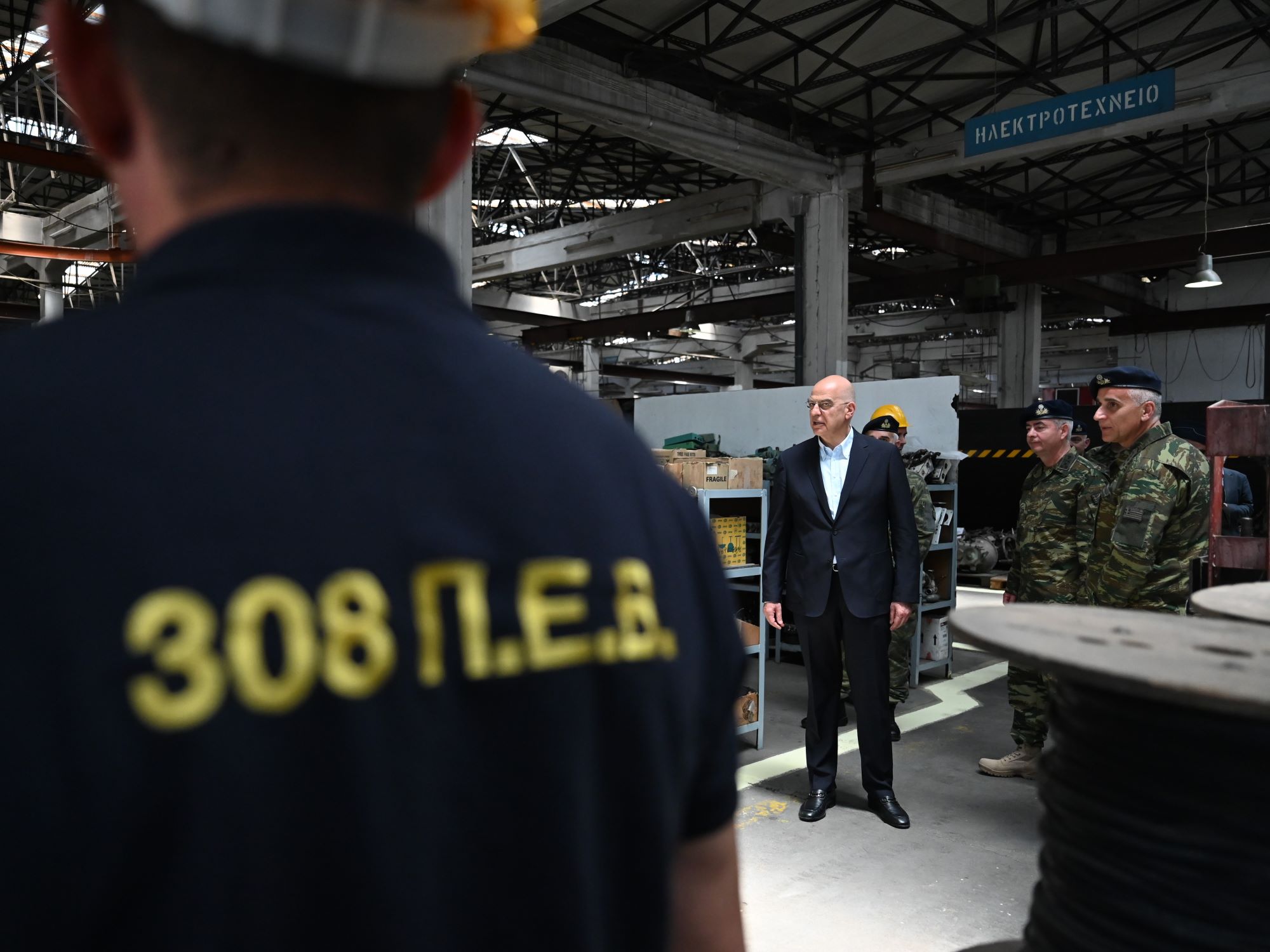 Ο κ. Δένδιας παρουσία του Διοικητή της ΑΣΔΥΣ «ΘΗΣΕΑΣ» Αντιστράτηγου Δημήτριου Μπολομύτη, ενημερώθηκε από τον Διοικητή του 308 ΠΕΒ Αντισυνταγματάρχη (ΤΧ) Αλέξανδρο Περιστέρη για το έργο και τις τρέχουσες δραστηριότητες του Εργοστασίου, στο οποίο και περιηγήθηκε.