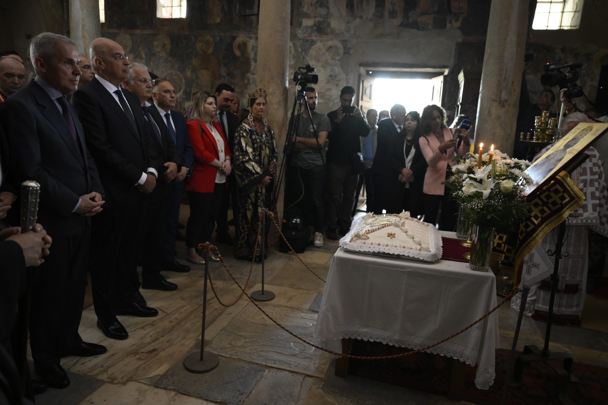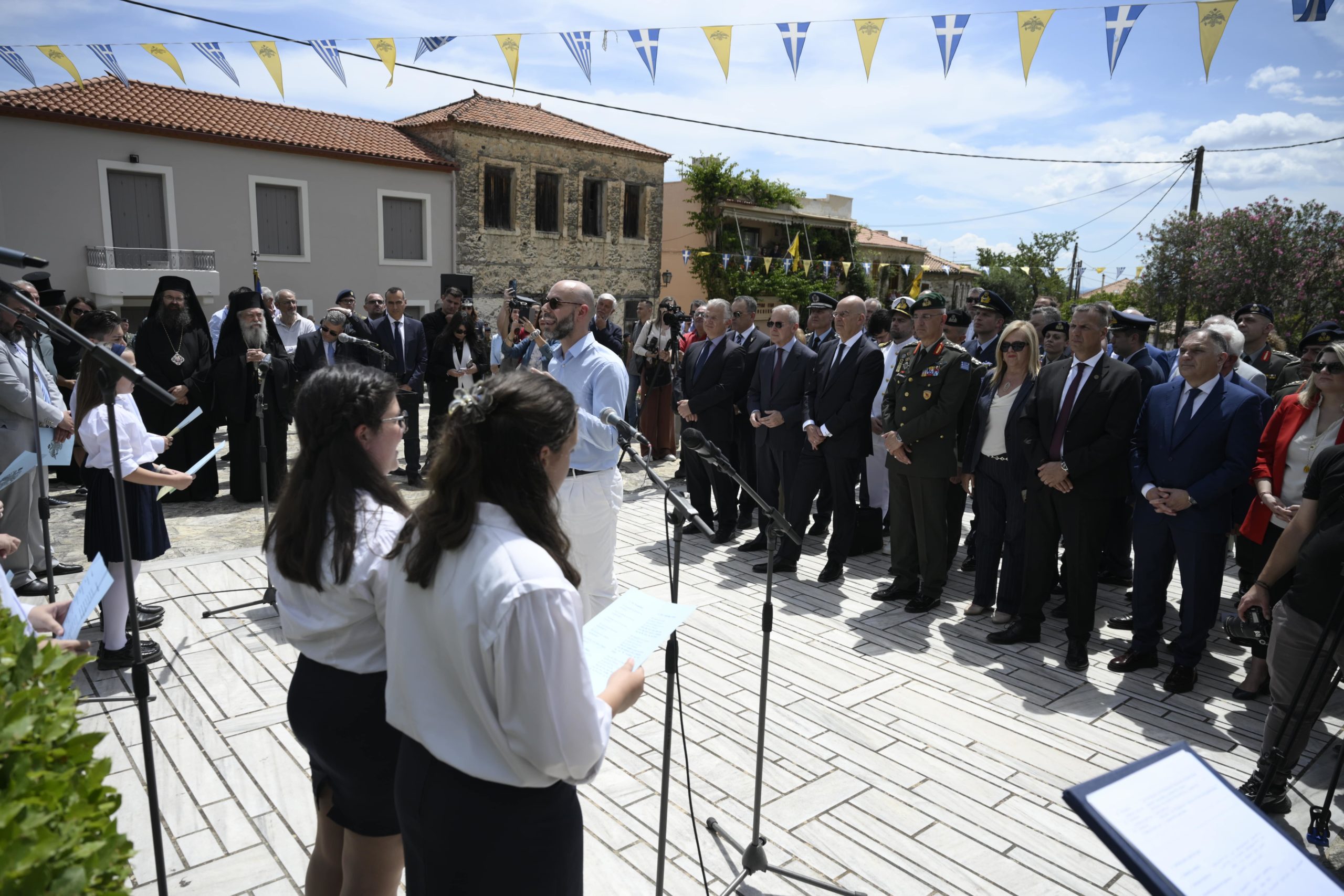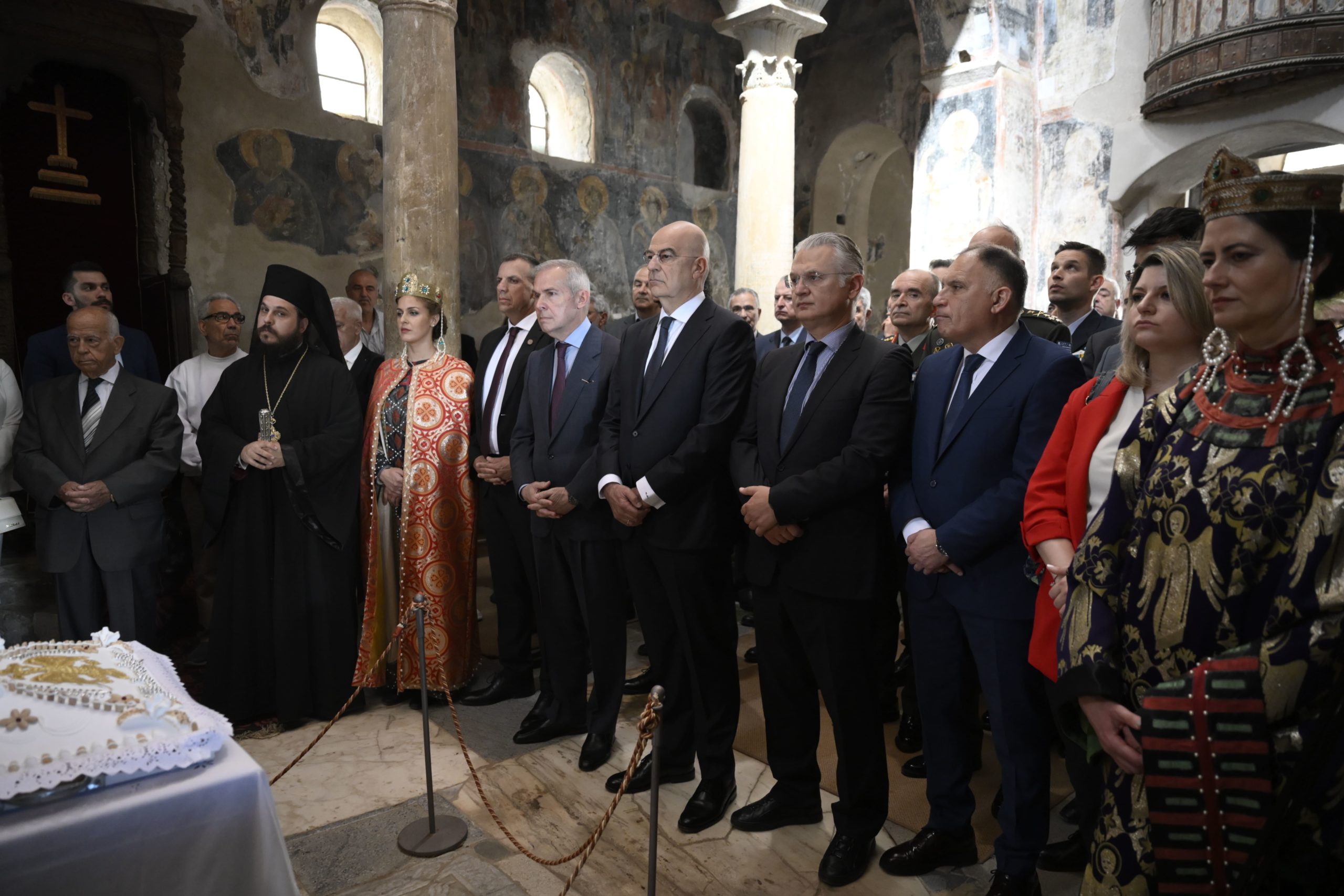 Στη συνέχεια, ο κ. Δένδιας μετέβη στον ανδριάντα του Κωνσταντίνου Παλαιολόγου, στην πλατεία της κοινότητας Μυστρά, όπου τελέστηκε τρισάγιο. Ακολούθησε κατάθεση στεφάνων.