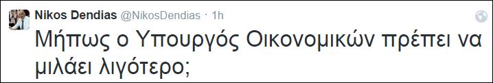 «Μήπως ο Υπουργός Οικονομικών πρέπει να μιλάει λιγότερο;», έγραψε ο Νίκος Δένδιας.