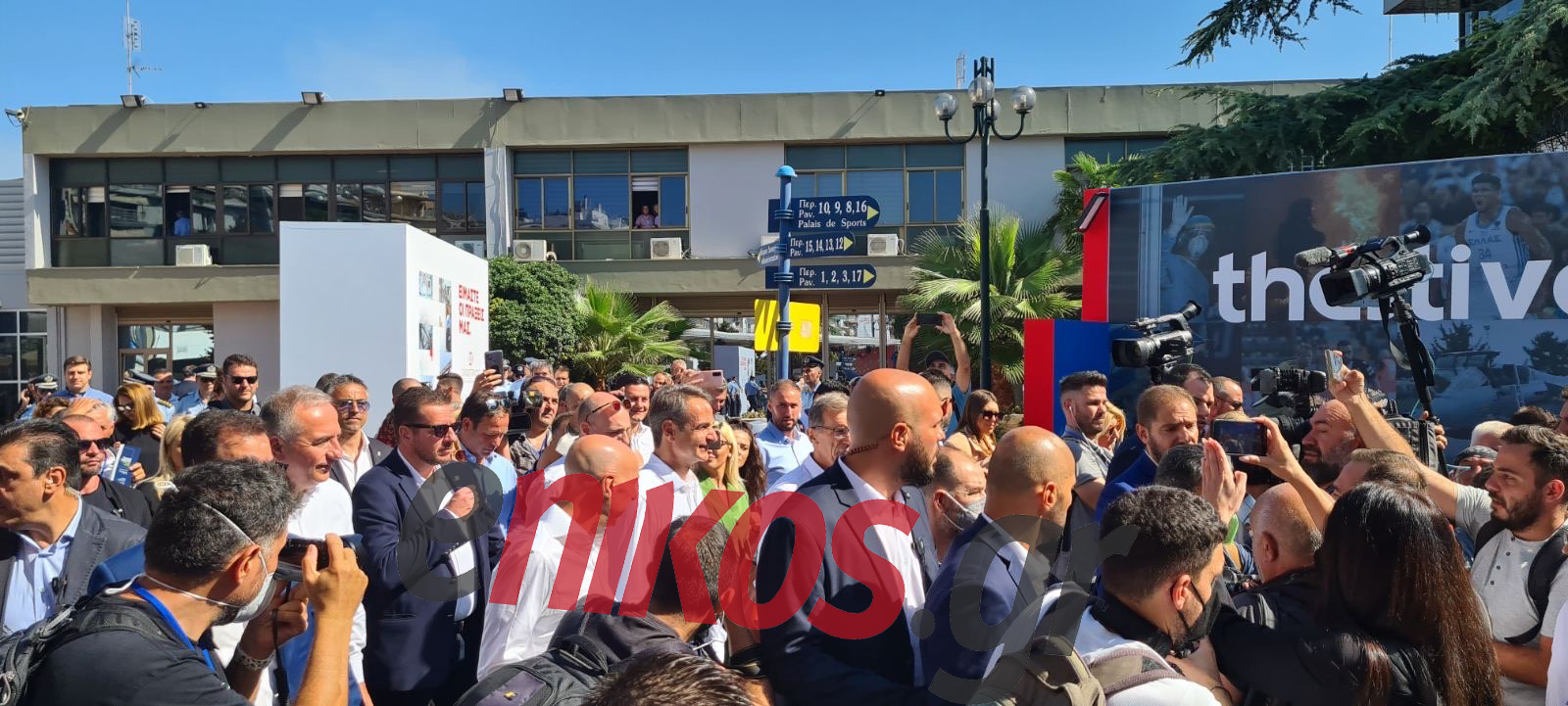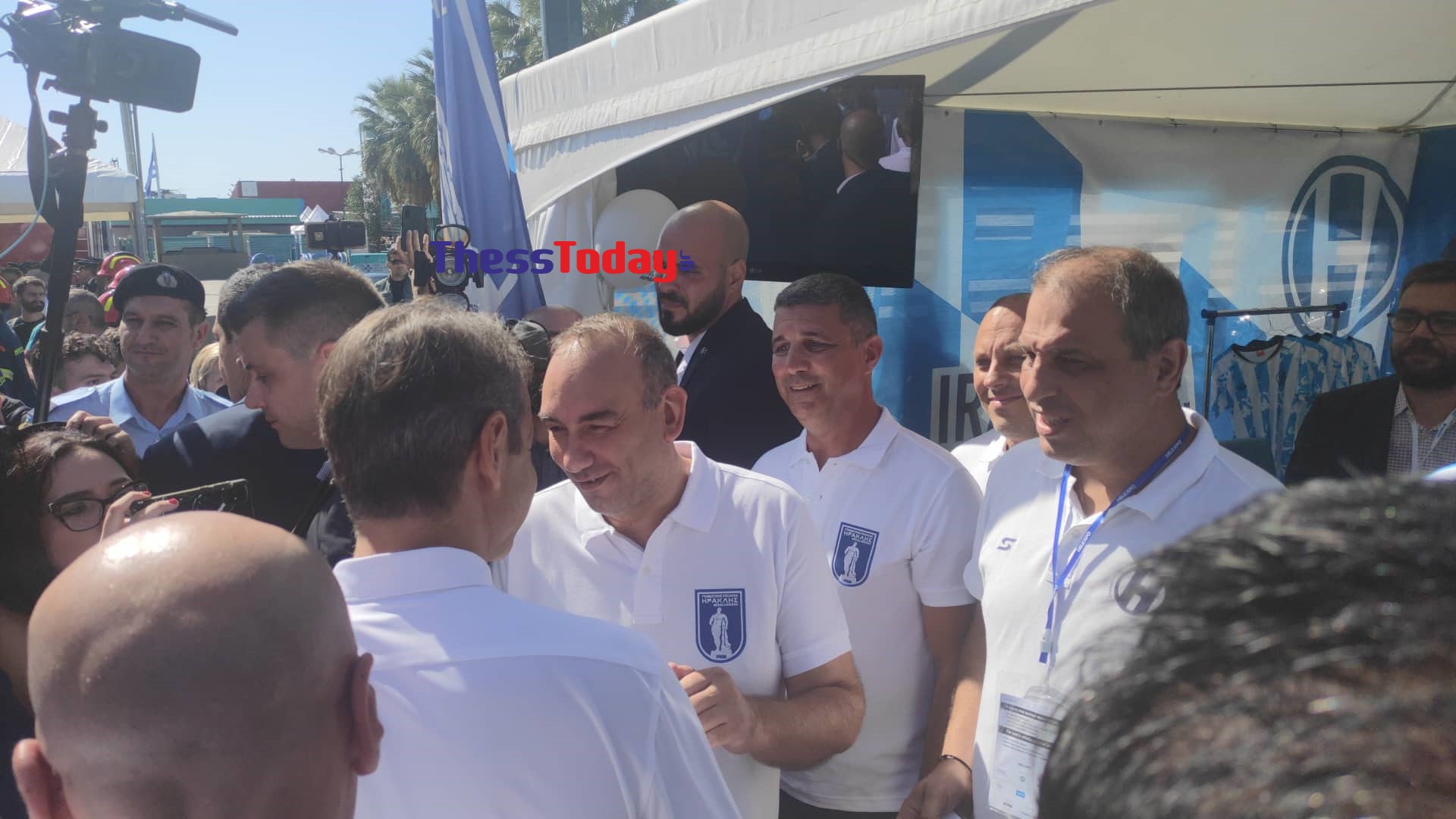 Ο κ. Μητσοτάκης έκανε στάση και στο περίπτερο της ομάδας του Ηρακλή, ο οποίος σύμφωνα με τον κ. Μητσοτάκη «έχει τα πιο ωραία χρώματα».