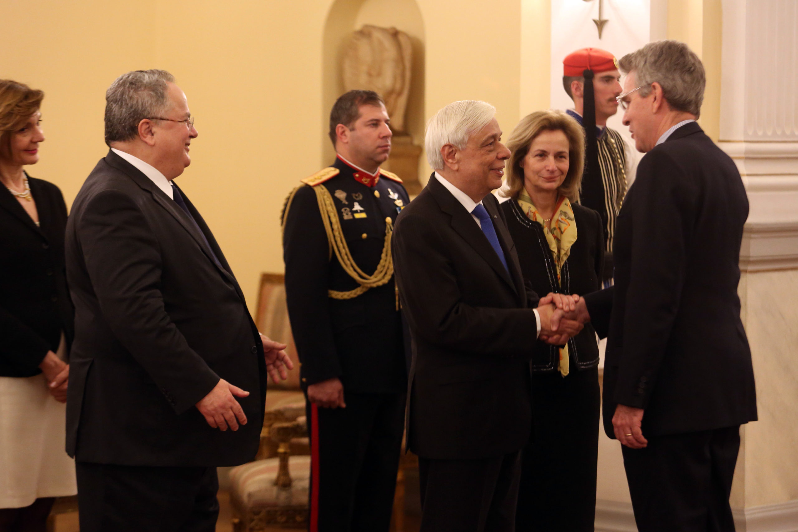 Εκτός από μέλη του Διπλωματικού Σώματος, ο κ. Παυλόπουλος υποδέχθηκε στο Προεδρικό Μέγαρο μέλη του υπουργικού συμβουλίου, εκπροσώπους κομμάτων, πολιτικούς, τη στρατιωτική ηγεσία της χώρας (το Ναυτικό εκπροσώπησε ο αρχηγός Στόλου Παυλόπουλος Ιωάννης), τους πρεσβευτές ξένων χωρών και τους εκπροσώπους διπλωματικών αποστολών στην Ελλάδα και στη συνέχεια συζήτησε μαζί τους για τις τρέχουσες εξελίξεις.
