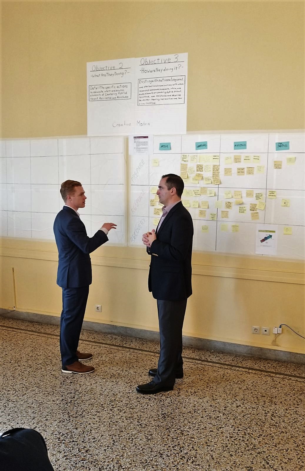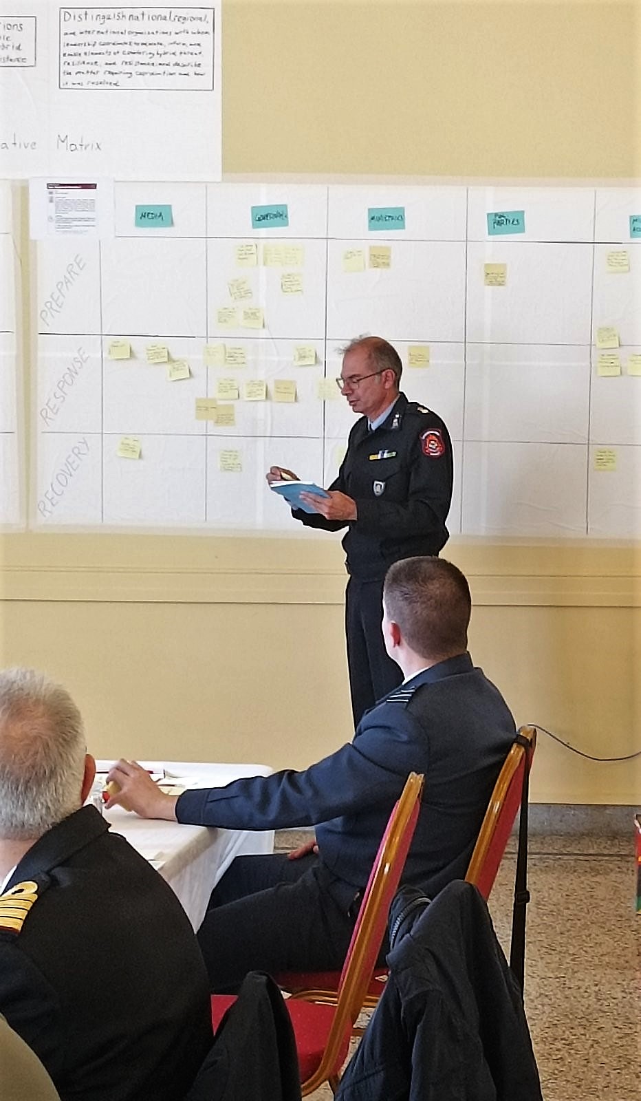 Τέλος, ανέδειξε τη σπουδαιότητα της ανθεκτικότητας για την αντιμετώπιση των υβριδικών απειλών μέσω της ολοκληρωμένης άμυνας που θα βασίζεται στο μοντέλο της ολιστικής διαχείρισης κρίσεων “Whole of Government Approach” και τη συμμετοχή όλη της κοινωνίας “Whole of Society Approach”. Επιπλέον, επισήμανε την αξία της ανάπτυξης μιας κοινής κουλτούρας σε σχέση με την αντιμετώπιση υβριδικών απειλών, καθώς και την ανάγκη για περαιτέρω συνεργασία μεταξύ του δημόσιου και ιδιωτικού τομέα και την αξιοποίηση όλων των συντελεστών εθνικής ισχύος.