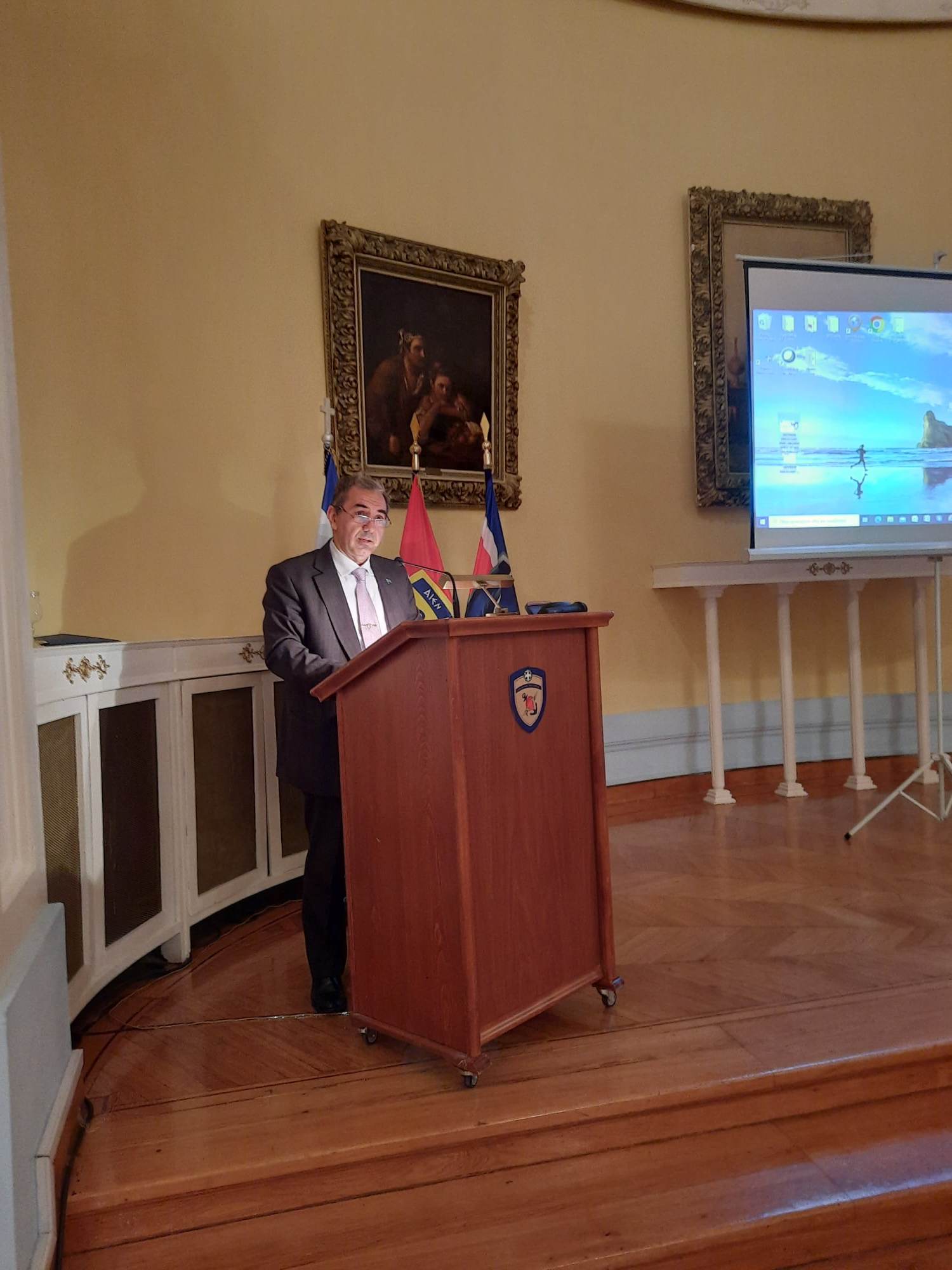 Αναφέρθηκε εκτενώς στο εθνικό πλαίσιο αντιμετώπισης των Υβριδικών Απειλών μέσω ενός εθνικού ολιστικού σχεδίου, δίνοντας ιδιαίτερη έμφαση στο γεγονός ότι η Τουρκία είναι ο βασικός παράγοντας αποσταθεροποίησης στην Ανατολική Μεσόγειο. Αρνείται να επιβάλει κυρώσεις στη Ρωσία όπως όλοι οι άλλοι σύμμαχοι του ΝΑΤΟ, συνεργάζεται ανοιχτά με τη Ρωσία και αποκτά στρατιωτικό ρωσικό εξοπλισμό με επικίνδυνες συνέπειες για την ασφάλεια της Συμμαχίας και αποτελεί απειλή για τα συμφέροντα της Συμμαχίας διότι λειτουργεί ως «Δούρειος Ίππος» της Ρωσίας εντός του ΝΑΤΟ.