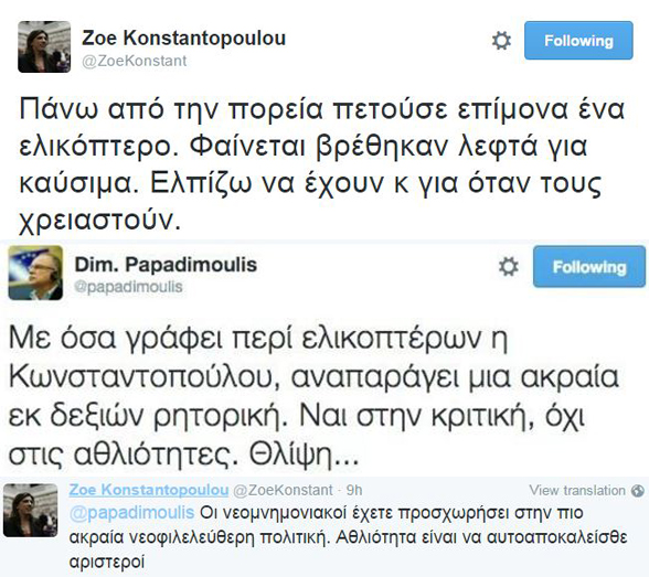 «Μάχη» στο twitter με την Ζωή Κωνσταντοπούλου και τον Δημήτρη Παπαδημούλη για το ελικόπτερο.