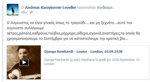 Σημειώνεται ότι σε ανάρτησή του σε ιστοσελίδα κοινωνικής δικτύωσης, κ. Καραγιάννης, αναφέρει: «…Και μη ξεχνάτε…αυτόν τον Αύγουστο συλλέγουμε πέτρες, ρόπαλα, καδρόνια, τούβλα, μάρμαρα, σίδερα, σχοινιά, αναπτήρες, τα οποία θα χρησιμοποιήσουμε το Σεπτέμβριο για να καταστείλουμε την κρατική βία…».