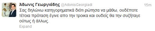 Και ο Άδωνις Γεωργιάδης διαψεύδει κατηγορηματικά μέσω twitter, την είδηση που κυκλοφόρησε σχετικά με την απαίτηση της τρόικας για εκκένωση όλων των ελληνικών νησιών που έχουν έως 150 κατοίκους.