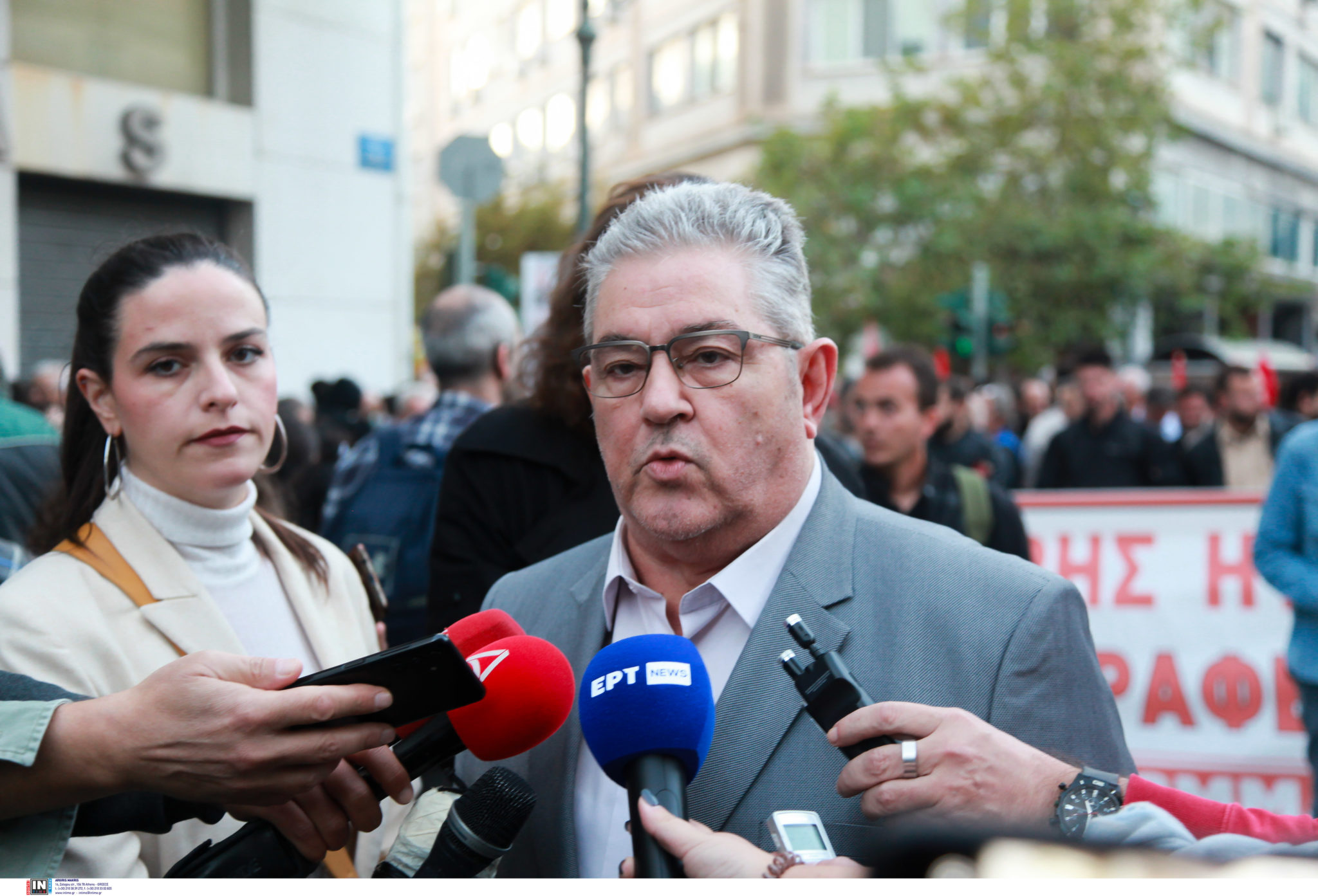 Ο Δ. Κουτσούμπας μετέφερε τη στήριξη του ΚΚΕ στα αιτήματα του Σωματείου, αλλά και στις απεργιακές κινητοποιήσεις που βρίσκονται σε εξέλιξη από τους εργαζόμενους στο έργο της κατασκευής της Γραμμής 4 του Μετρό.