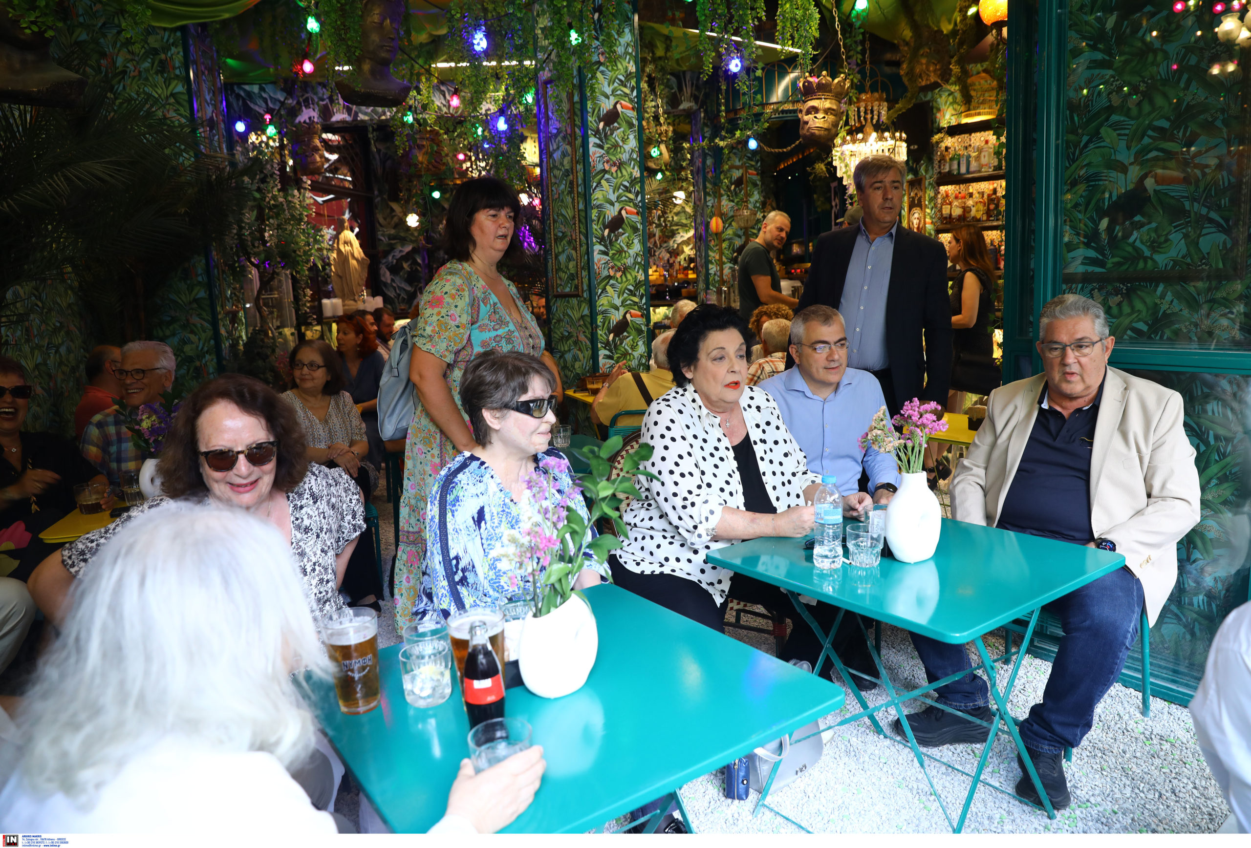 Στην εικόνα φαίνεται το Δημήτρης Κουτσούμπας να καπνίζει με παρέα σε εξωτερικό χώρο καταστήματος εστίασης. Κάποιοι χρήστες με κριτική διάθεση σχολίαζαν ότι ο γενικός γραμματέας του ΚΚΕ έπινε τον καφέ του στο Da Capo στο Κολωνάκι.