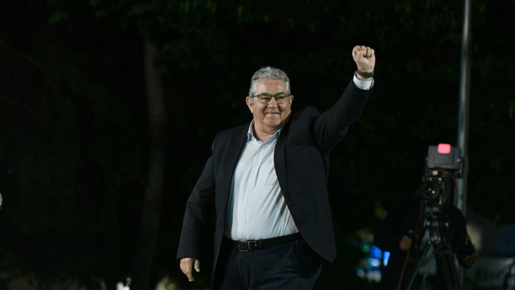 Απόψε από δω από τη Λάρισα, από αυτή τη μεγάλη συγκέντρωση στέλνουμε μήνυμα αισιοδοξίας, ελπίδας, μήνυμα αποφασιστικής ενίσχυσης του ΚΚΕ.