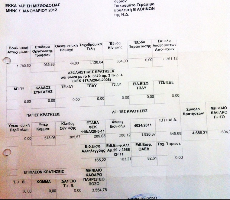 Το αποδεικτικό της βουλευτικής του αποζημίωσης έβγαλε στη δημοσιότητα ο βουλευτής της ΝΔ Γεράσιμος Γιακουμάτος. Με ανάρτηση στο twitter ο κ. Γιακουμάτος προχώρησε σε αυτή την κίνηση για να σταματήσει όπως τονίζει ο λαϊκισμός για μισθούς 8000 και 20.000 ευρώ.Συγκεκριμένα ο κ. Γιακουμάτος στην ανάρτησή του τόνισε:«Είναι ντροπή να υπάρχει τέτοιος λαϊκισμός για 8000 και 20.000. Δείτε και τον Ιανουάριο».