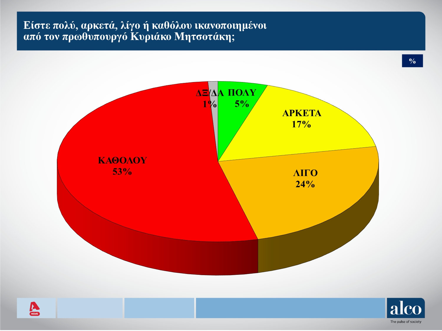 «Είστε πολύ, αρκετά, λίγο ή καθόλου ικανοποιημένοι από τον πρωθυπουργό, Κυριάκο Μητσοτάκη;»
