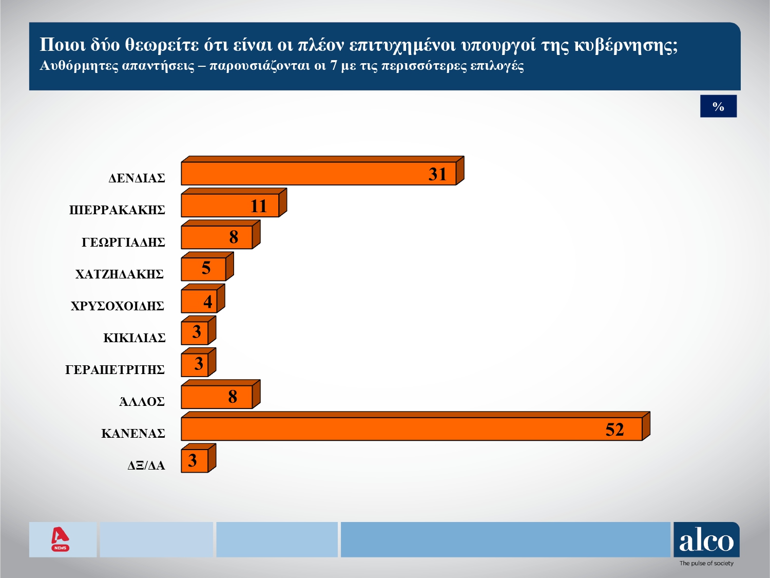 Οι συμμετέχοντες στην έρευνα κλήθηκαν να απαντήσουν αυθόρμητα σε ερώτημα για το ποιους δύο θεωρούν ως τους πλέον επιτυχημένους υπουργούς της κυβέρνησης.