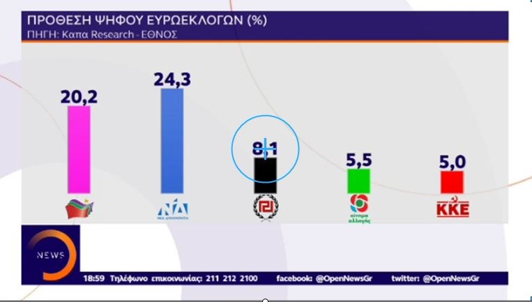 Δημοσκόπηση της ΚΑΠΑ Research σχετικά με τις Ευρωεκλογές δημοσιεύει το “Έθνος της Κυριακής”.