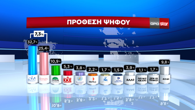 Με διαφορά 7,3 % προηγείται η ΝΔ στην πρόθεση ψήφου στη δημοσκόπηση της GPO για το Star, η οποία καταγράφει πόσο επηρεάσθηκε το πολιτικό σκηνικό από την παρουσία και τις εξαγγελίες των πολιτικών αρχηγών στη ΔΕΘ.