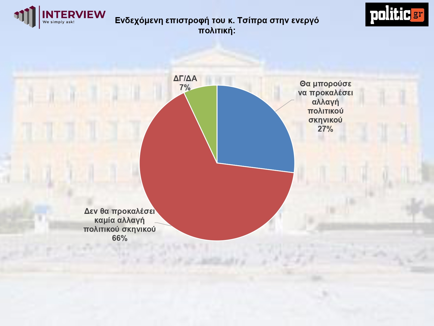 Αν και ο Αλέξης Τσίπρας ήταν 15 χρόνια στο τιμόνι του ΣΥΡΙΖΑ και αφού αποχώρησε αναδύθηκε βαθιά εσωστρέφεια στο κόμμα που οδήγησε σε διασπάσεις και μετακινήσεις, σχεδόν 7 στους 10 απαντούν πως μια ενδεχόμενη επιστροφή του στην ενεργό πολιτική δεν θα προκαλούσε αλλαγή στο πολιτικό σκηνικό.